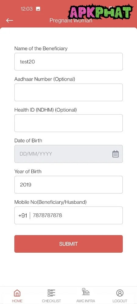 The app is primarily designed for Anganwadi workers, but citizens can also use the self-registration feature to track family nutrition data.